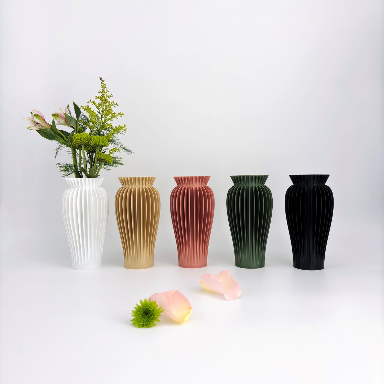 To honor this classic form with a contemporary twist, we 3D printed the MAE Vase using sustainable materials, adding ribbed textures as a modern design element. This blend of heritage and innovation makes the Mae Vase a striking centerpiece for any space.